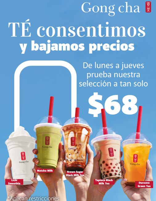 /COMUNICAE/ “Te consiente con deliciosas bebidas a solo 68 pesos de lunes a jueves en todas sus sucursales” Gong cha, la casa de bubble tea más grande alrededor del mundo,…