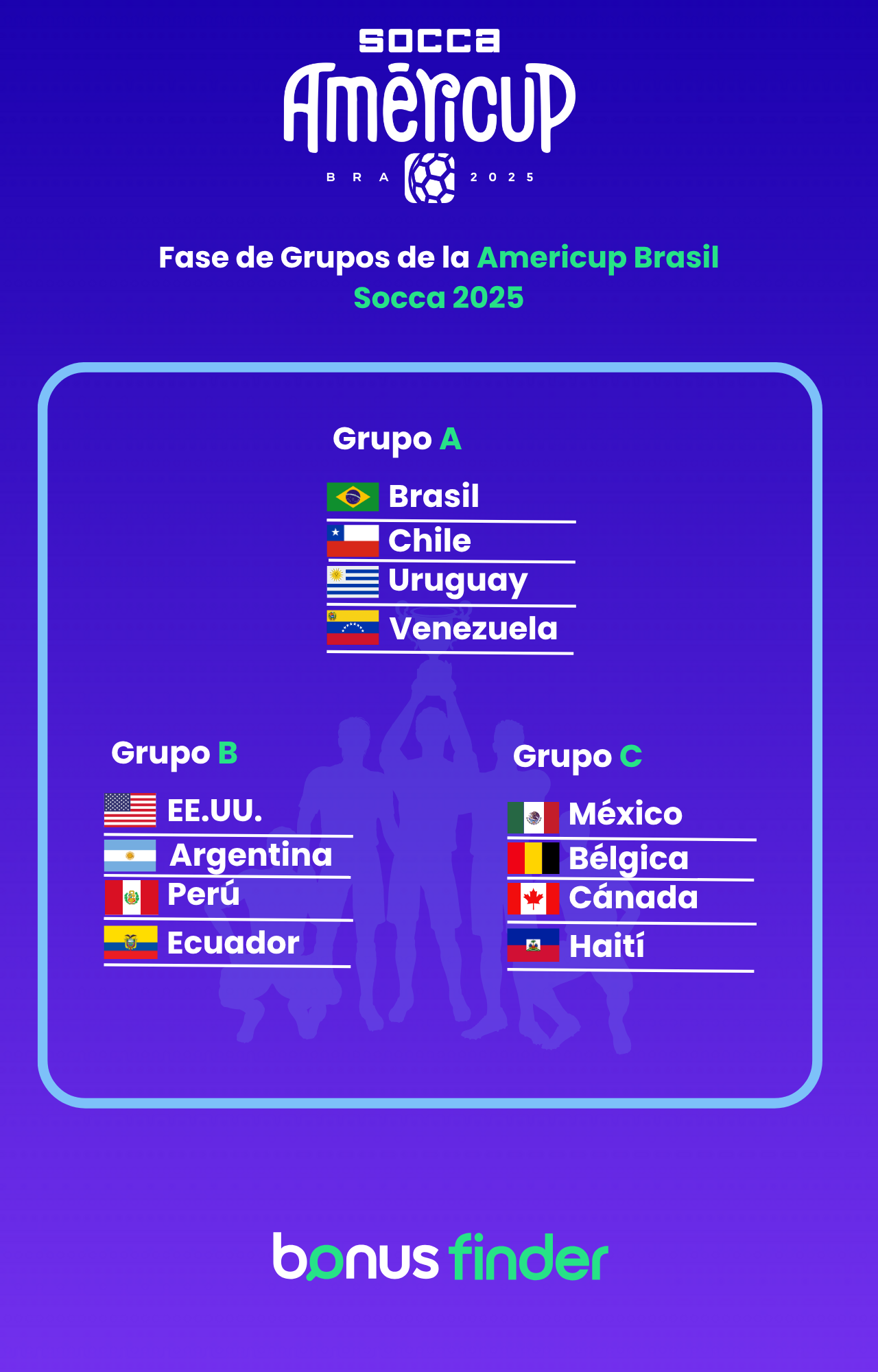 BonusFinder, el primer agregador global de bonos y ofertas de casinos y casas de apuestas online, se enorgullece en apoyar al deporte mexicano y en especial a esta selección que ha demostrado su calidad en el fútbol 6 a nivel internacional.