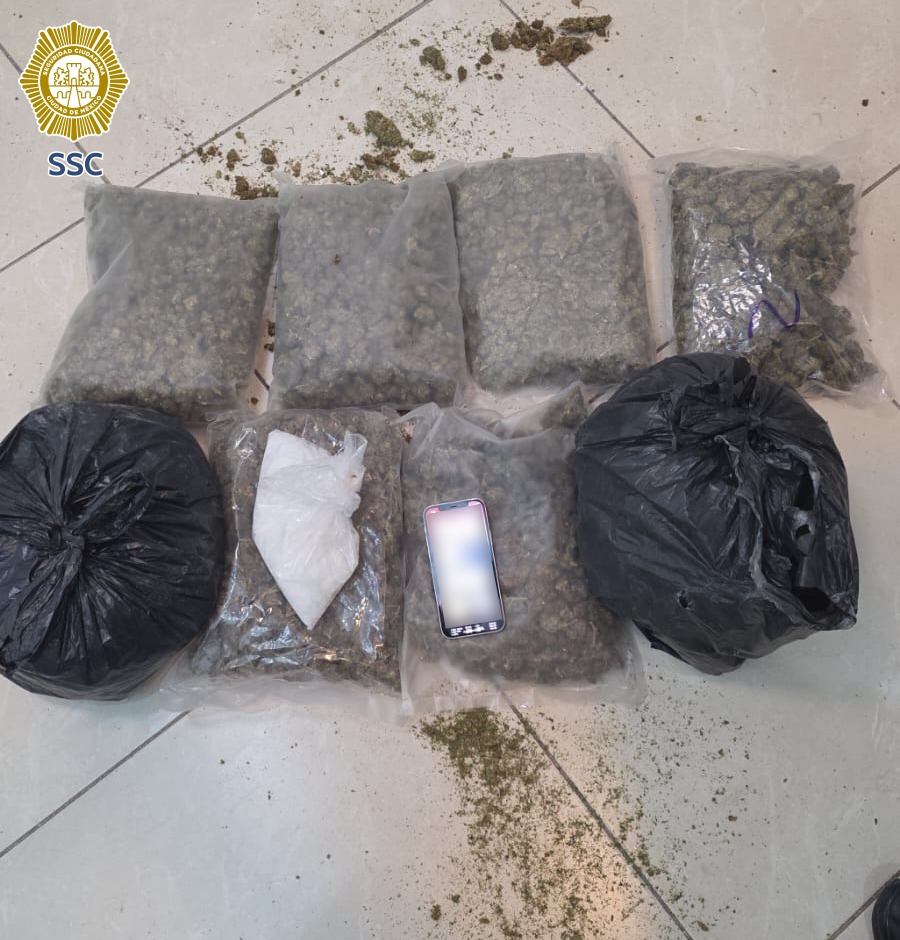CDMX, 09 febrero 2026.- El reforzamiento de operativos en la zona centro de la capital dejó un golpe directo al narcomenudeo. Elementos de la Secretaría de Seguridad Ciudadana (SSC) detuvieron en la colonia Morelos, alcaldía Venustiano Carranza, a dos hombres que cargaban 10 kilos de aparente marihuana y un paquete de posible crystal.