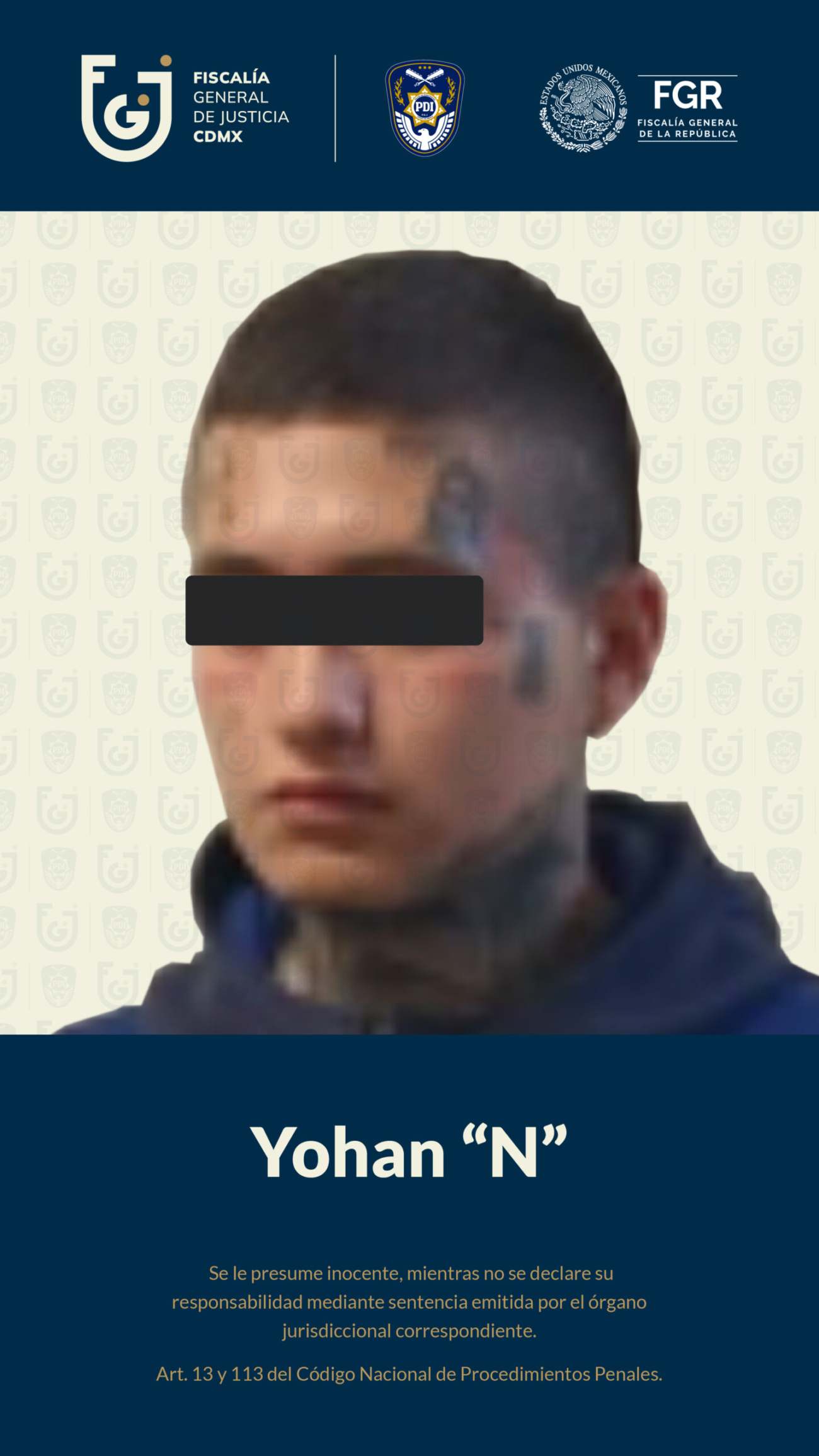 Ciudad de México, 05 noviembre 2025. — Elementos de la Policía de Investigación (PDI) detuvieron a Yohan “N”, presunto integrante de La Unión Tepito, acusado de participar en el secuestro agravado de un hombre ocurrido en 2022 en la alcaldía Cuauhtémoc. La captura fue resultado de una operación coordinada entre la Fiscalía General de Justicia de la Ciudad de México (FGJCDMX), la Fiscalía General de la República (FGR) y autoridades internacionales.