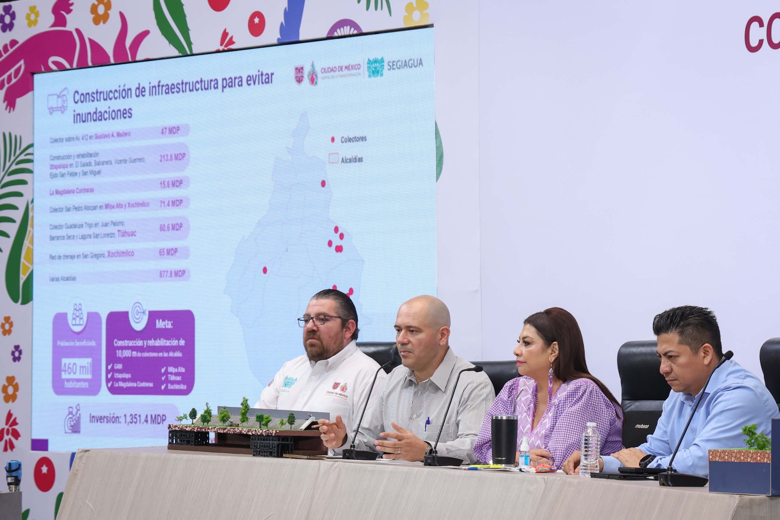 Además, se invertirán mil 546 millones de pesos en rehabilitación de infraestructura electromecánica —bombas, compuertas y rebombeos— para acelerar el desalojo de agua en temporada de lluvias.