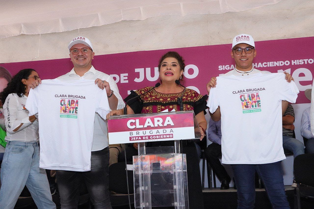 CDMX, 18 mayo 2024 (PERIODISMONEWS.COM).- Desde el pueblo de San Miguel Topilejo, en Tlalpan, Clara Brugada Molina, candidata a Jefa de Gobierno por la coalición “Sigamos Haciendo Historia”, integrada por Morena, PT, PVEM, anunció la declinación del candidato a diputado local por Movimiento Ciudadano en el distrito 16, Martín García; su coordinador de campaña, Carlos Antonio Argüijo, así como el coordinador juvenil del partido naranja en dicha demarcación, Armando Linares.