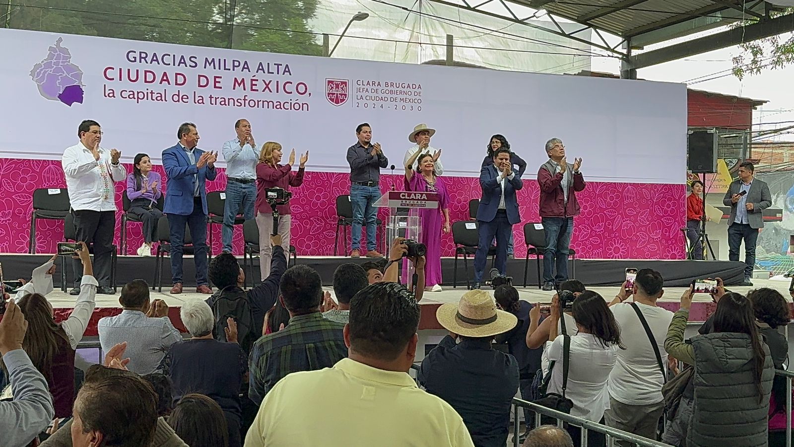 Asimismo, dijo que abrirá una oficina de SACMEX con la intención de solucionar el problema de desabasto de agua en Milpa Alta, además se comprometió a regresar el 6 de octubre a la Feria del Nopal, impulsar la infraestructura deportiva y construir utopías, sin dejar de mencionar la construcción de tres líneas de Cablebús.“Pues ahora volaremos por los cielos”, refrendó Brugada Molina.