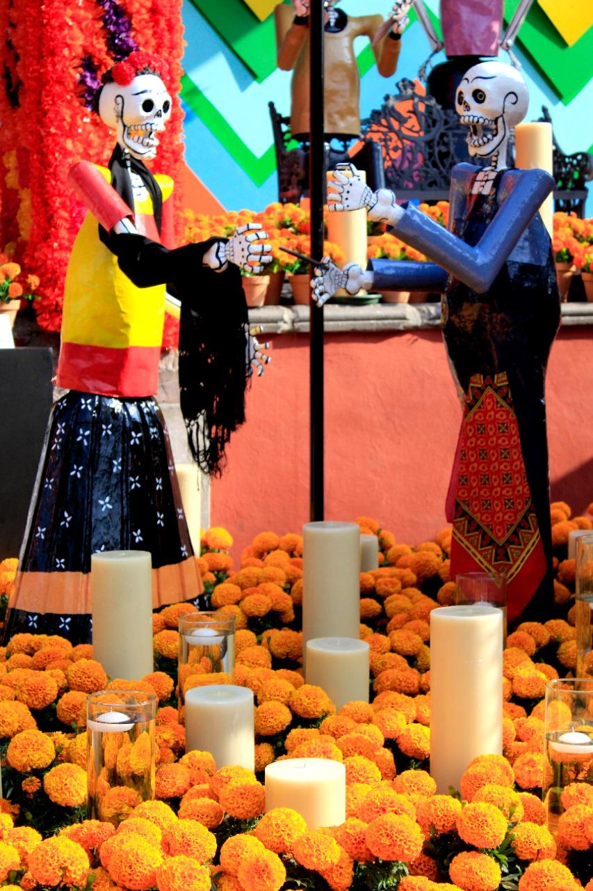 Las obras estarán a cargo del maestro José San Martín García, originario de Coyoacán, dedicado a la cartonería y reconocido a nivel internacional por su trabajo. Además, la ofrenda contará en su altar con elementos fundamentales en su composición como flores de cempasúchil, papel picado, veladoras, copal, incienso, agua, comida y fotografías.