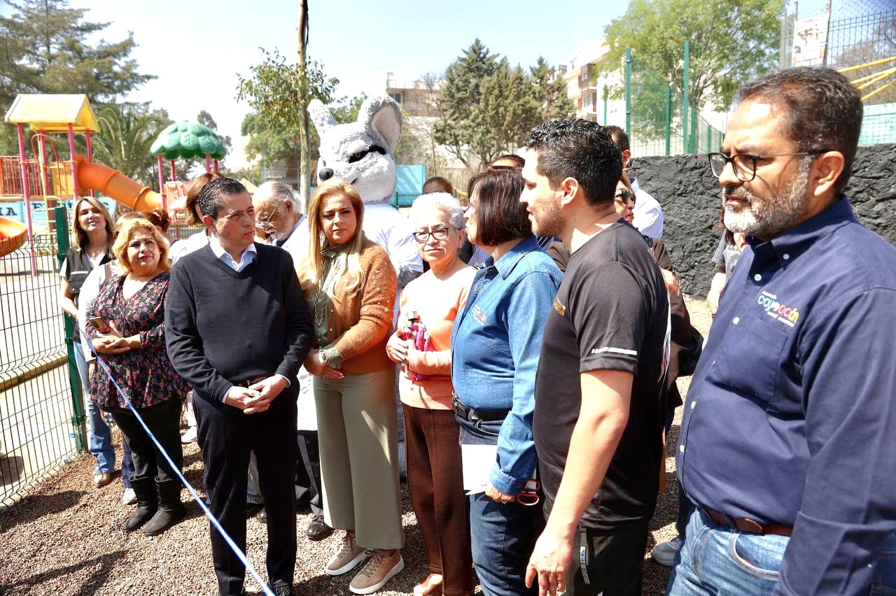 Este domingo, acompañado por las directoras generales de Obras, Martha Elguea; Desarrollo Social, Gabriela Loya; Igualdad de Género y No Discriminación, Desirée Navarro, el alcalde Giovani Gutiérrez inauguró el parque para mascotas en la avenida Libertad, Pedregal de Carrasco en la colonia Villa Panamericana, sitio donde convergen tres escuelas.