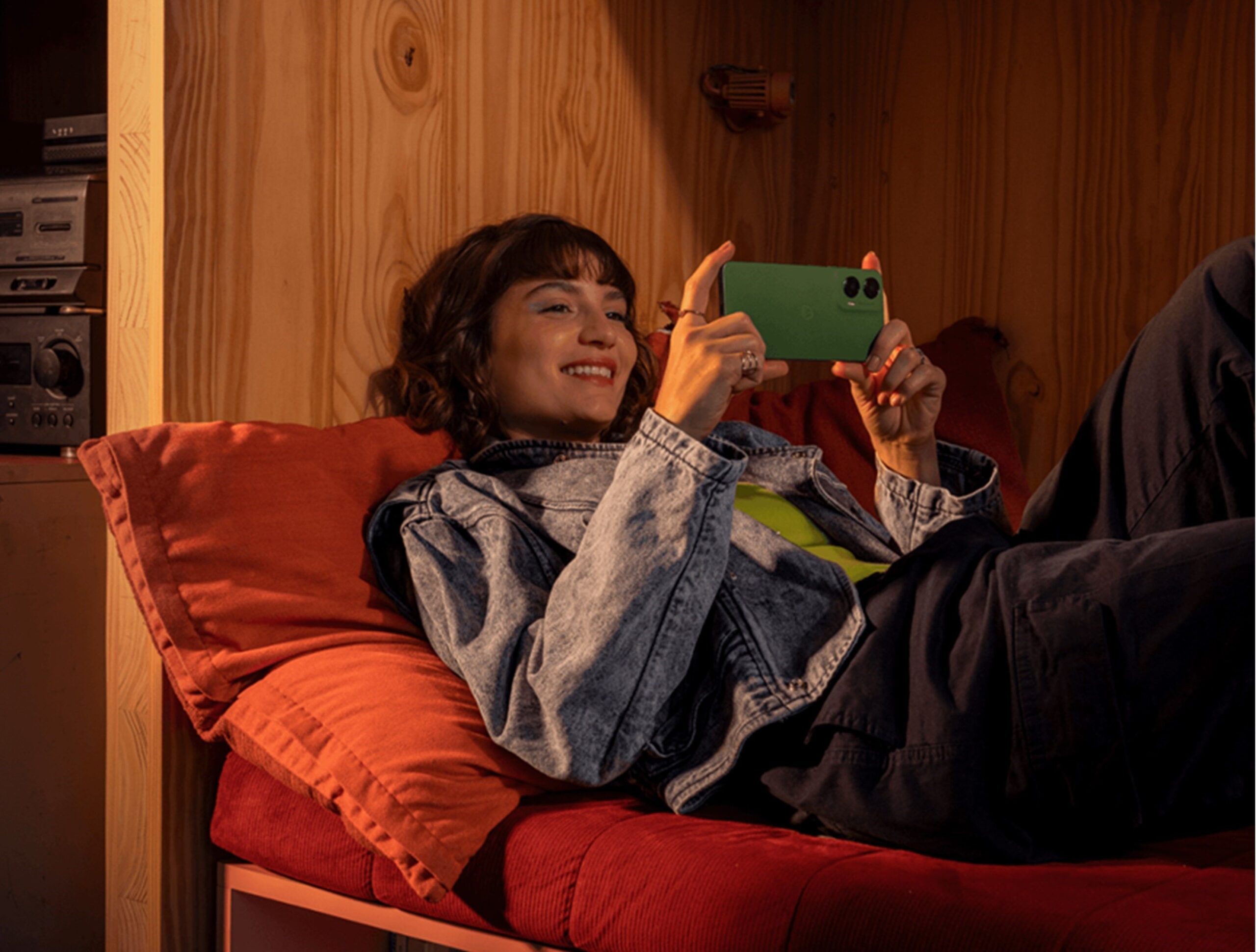 El nuevo moto G35 5G cuenta con una pantalla LCD FHD+ de 6,72″ que presenta colores vibrantes y efectos visuales nítidos. Ya sea disfrutando de emocionantes dramas televisivos o aventuras de juego, su frecuencia de refresco de 120Hz asegura una experiencia fluida y sin interrupciones. Con un brillo excepcional de 1,000 nits y mejora de color integrada, la pantalla ofrece contrastes vibrantes y saturación intensa, incluso en condiciones de mucha luz. Además, para completar la experiencia inmersiva, el dispositivo incorpora altavoces estéreo con soporte para Dolby Atmos®, que brinda un sonido envolvente con mayor profundidad, claridad y detalle. Con su batería de 5000 mAh y carga rápida de 18W, los usuarios pueden disfrutar de un día completo de uso sin preocuparse por quedarse sin energía.