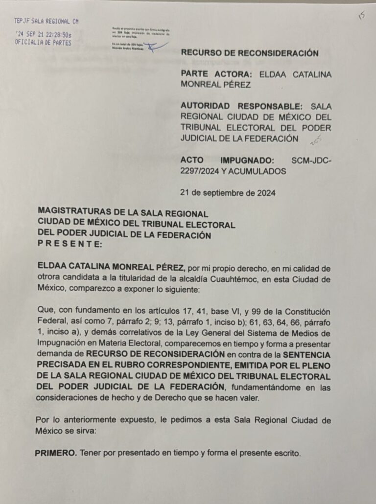 Por NOTICIASCD.MX CDMX, 22 septiembre 2024 (INFORMATIVODIGITAL.COM.MX).- Como se esperaba, Catalina Monreal, quien fuera candidata de Morena para la Alcaldía Cuauhtémoc, presentó un recurso de impugnación luego de que la Sala Regional…