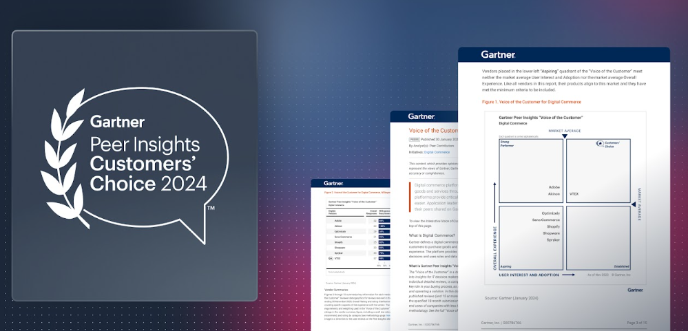 VTEX (NYSE: VTEX), la plataforma de comercio composable y completa para marcas B2C y B2B, fue reconocida como el único proveedor incluido en el cuadrante Customers’ Choice en la edición 2024 del informe Voice of the Customer for Digital Commerce de Gartner®. Los proveedores reconocidos alcanzan o sobrepasan el promedio del mercado tanto en “Overall Experience” como en “User Interest and Adoption”.